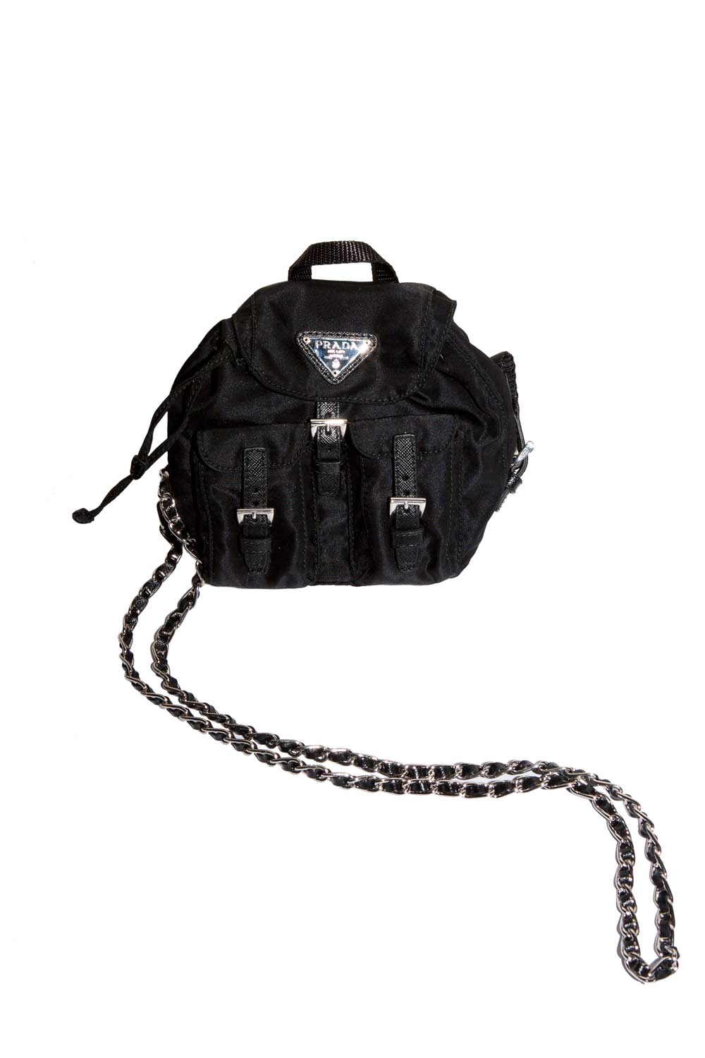 MINI BLACK NYLON BAG WITH SILVER CHAIN OPTION