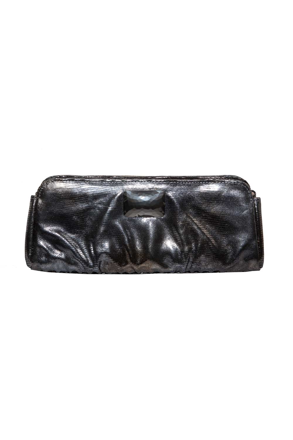METALLIC BRONZE LIZARD EMBOSSED LEATHER CLUTCH