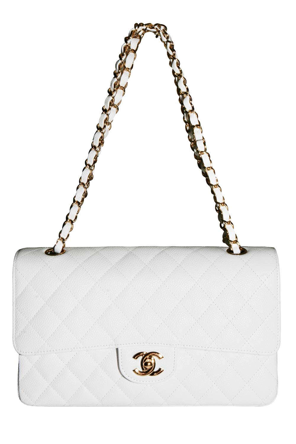 MEDIUM FLAP BAG IN WHITE CAVIAR LEATHER WITH GOLD “CC” TURNLOCK