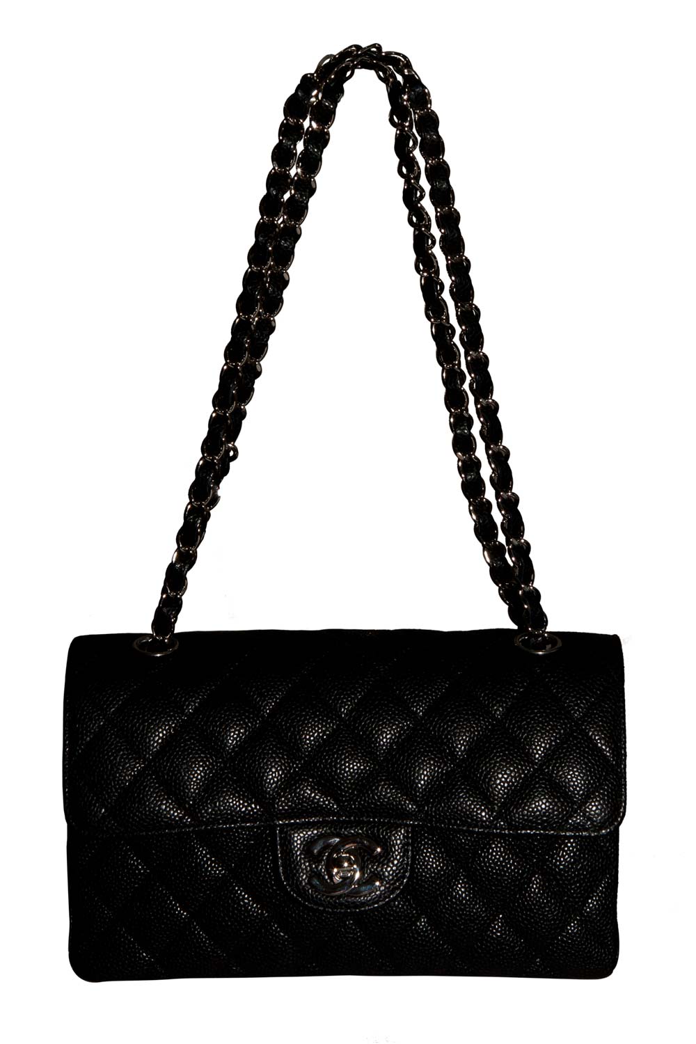 MEDIUM FLAP BAG IN BLACK CAVIAR LEATHER WITH SILVER “CC” TURNLOCK