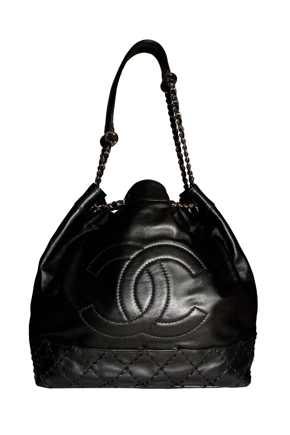 SHOULDER BAG IN BLACK LAMBSKIN & SILVER HARDWARE