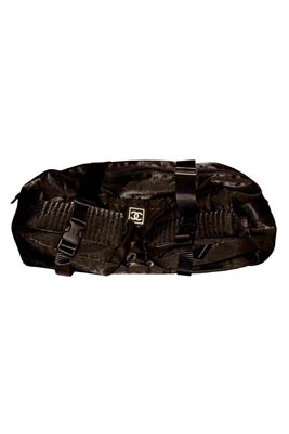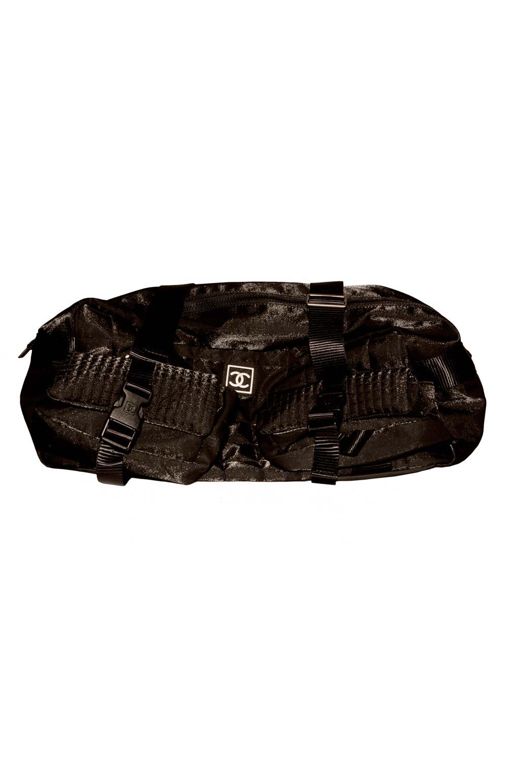 LARGE OVERNIGHT BAG IN BLACK METALLIC NYLON WITH SHOULDER STRAPS