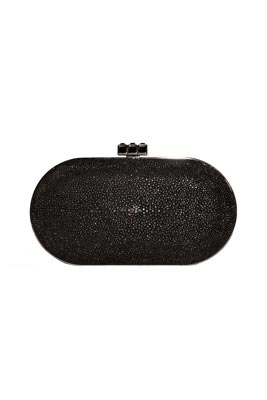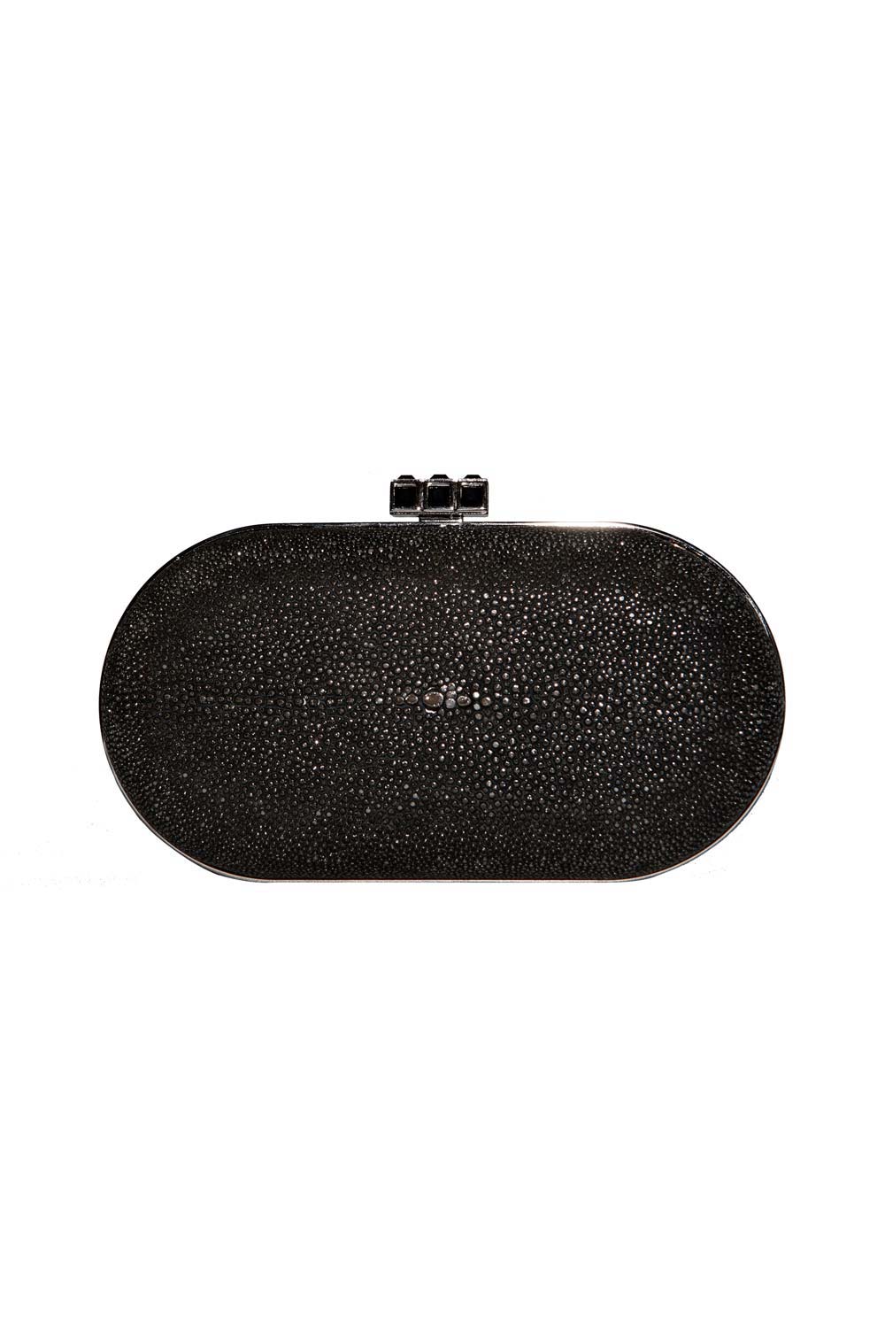 ROUNDED GREEN-BLACK MINAUDIÈRE WITH INTERIOR POCKET, SHOULDER CHAIN OPTION AND JEWEL SHAPED TOP SNAP CLOSURE