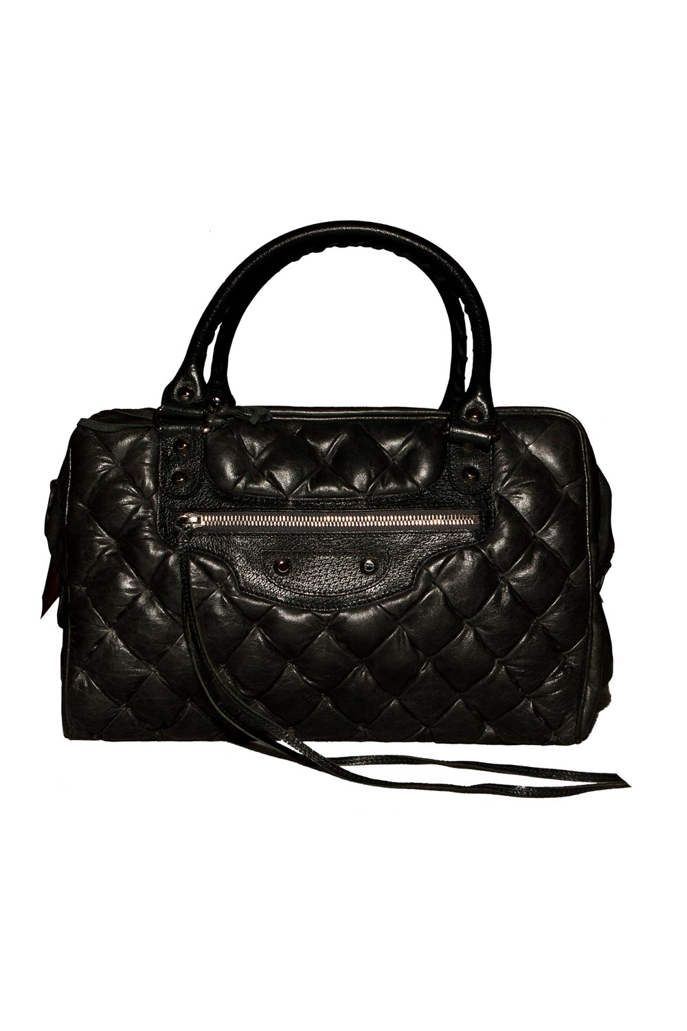 LARGE BOWLER BAG IN BLACK GOATSKIN WITH SILVERTONE HARDWARE