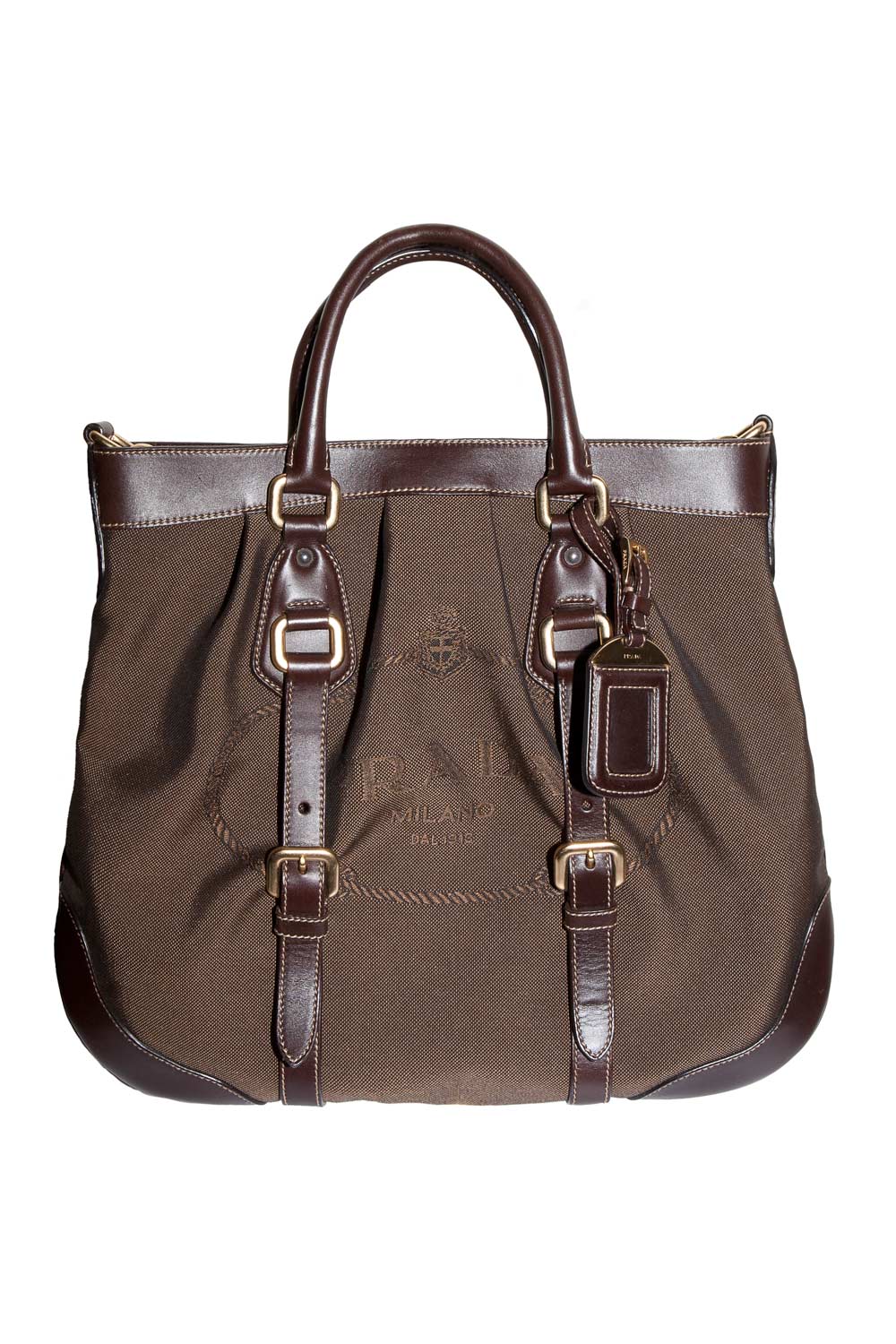 FABRIC TOTE WITH SAFFIANO CALF LEATHER & BRASS HARDWARE
