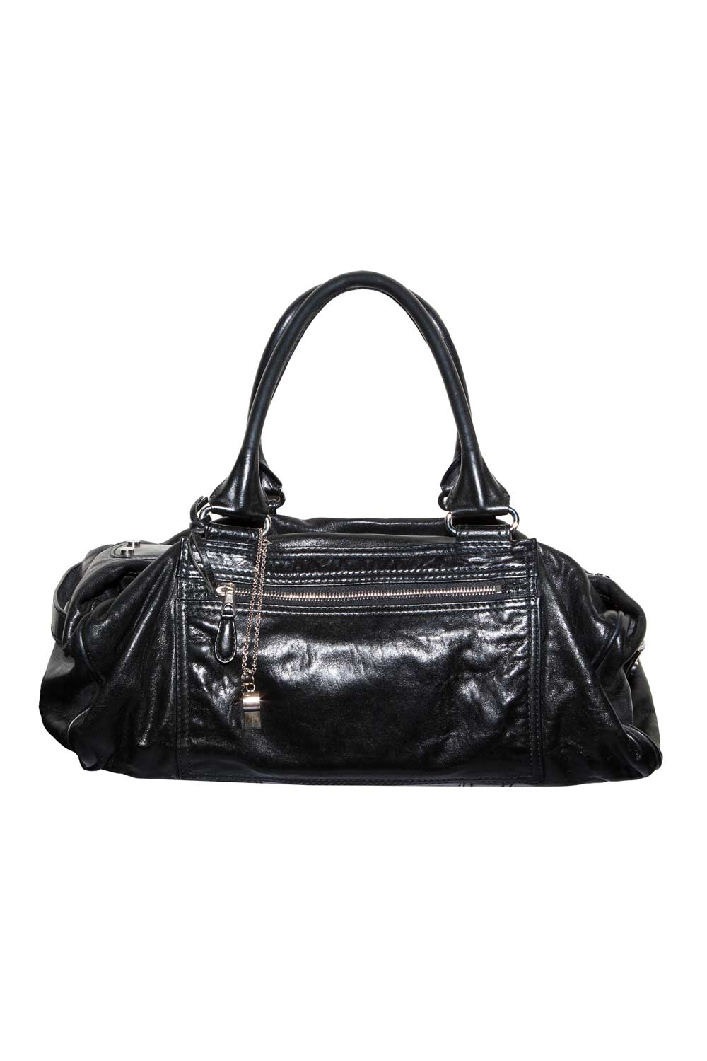 BLACK LEATHER BAG WITH SILVER HARDWARE