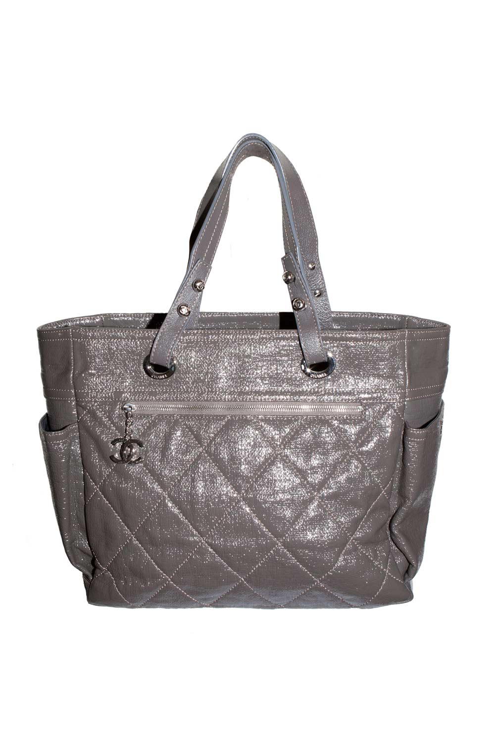 SILVER-GRAY COATED CANVAS BAG WITH LEATHER TRIMMINGS