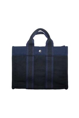 SMALL TOTE IN NAVY BLUE CANVAS & SILVER PALLADIUM PLATED CLOU DE SELLE SNAP CLOSURE