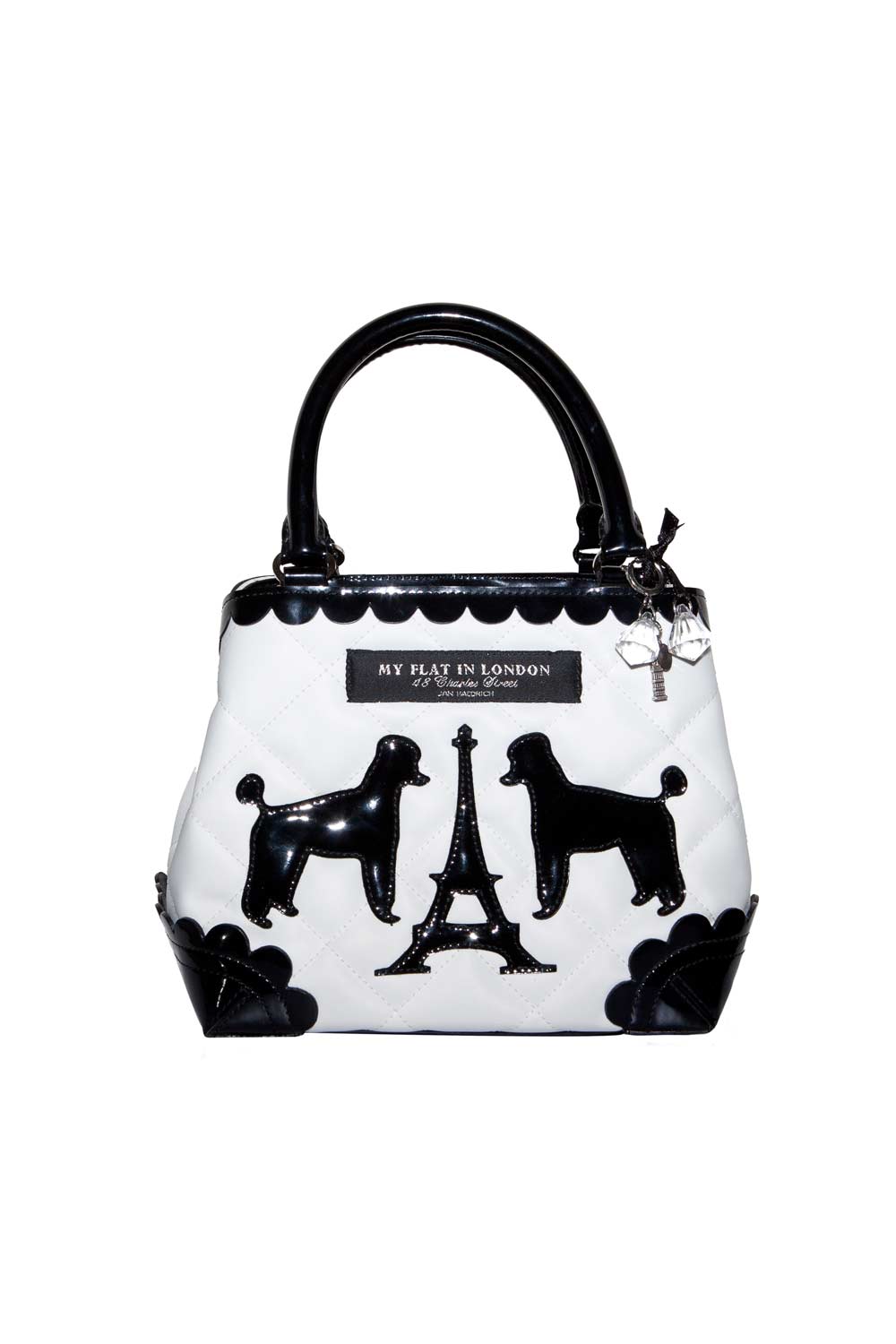 SMALL QUILTED TOTE BAG WITH BLACK PATENT LEATHER TRIMMINGS