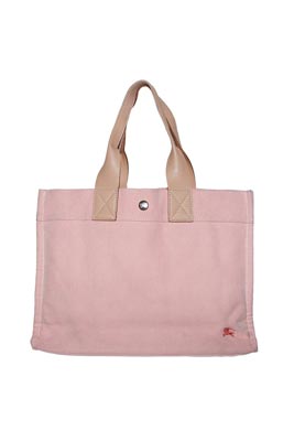 LIMITED EDITION BLUE LABEL TOTE IN PINK CANVAS & LIGHT TAN LEATHER HANDLES