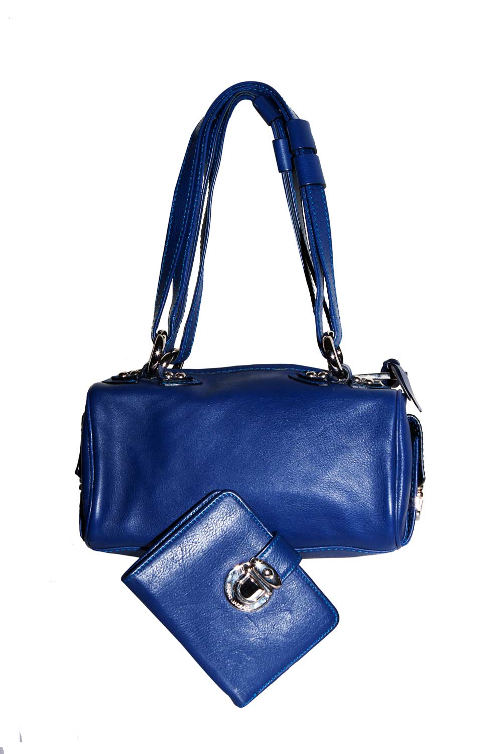 SMALL LEATHER BAG WITH SIGNATURE SILVERTONE PUSH-LOCK CLOSURE ON BOTH SIDES. COMES WITH MATCHING WALLET