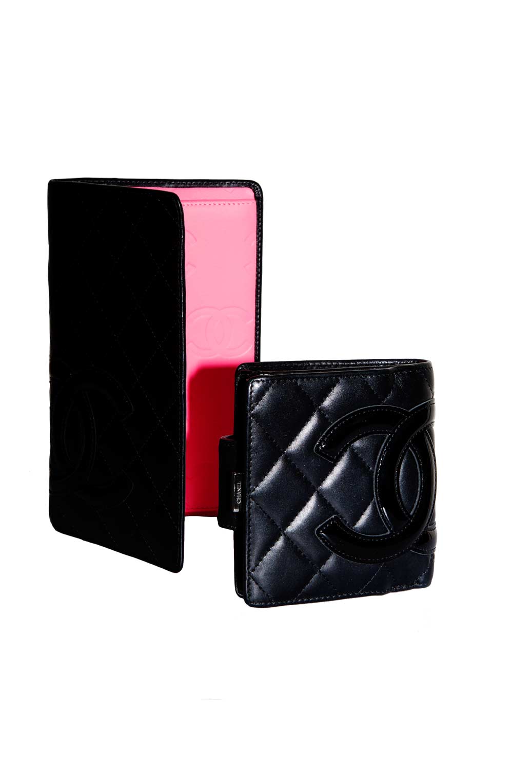 BLACK LIGNE CAMBON WALLETS WITH HOT PINK LEATHER INTERIOR