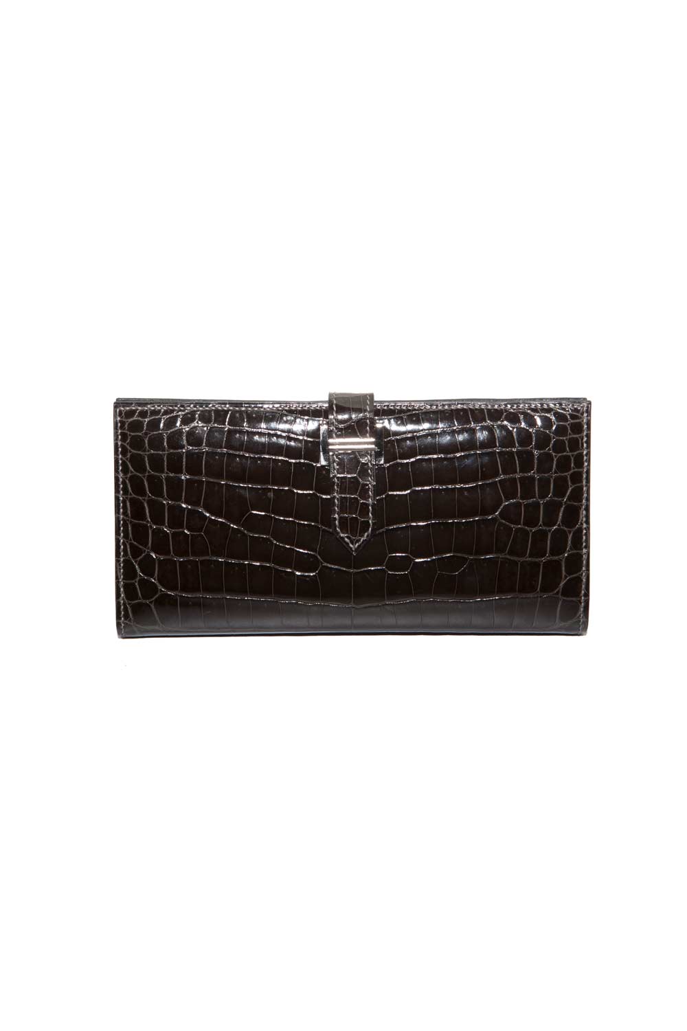 BLACK WALLET IN SHINY CROCODILE SKIN WITH SILVER PALLADIUM HARDWARE