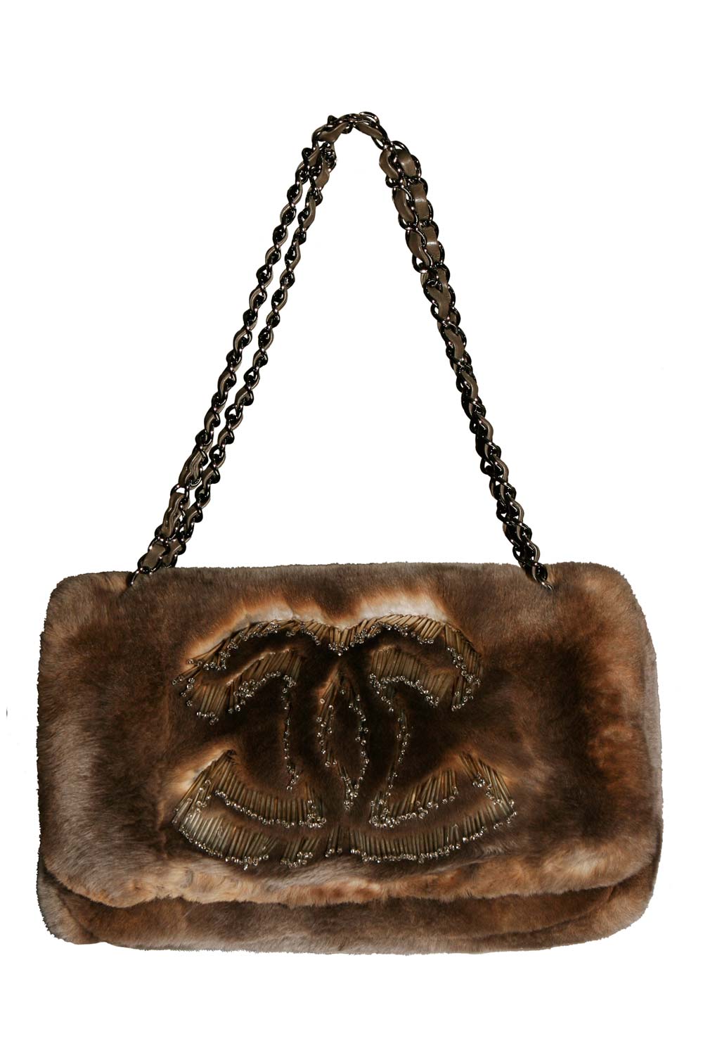 FUR FLAP BAG WITH SIGNATURE “CC” BEADINGS