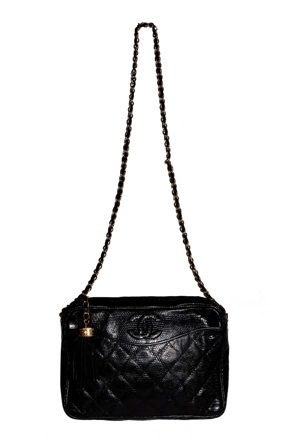 VINTAGE LIZARD SHOULDER BAG WITH TASSLE