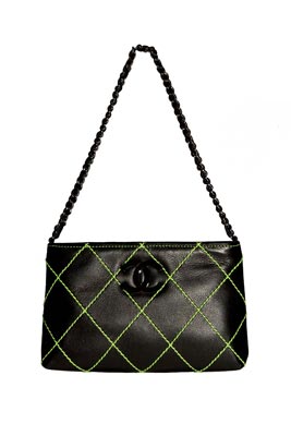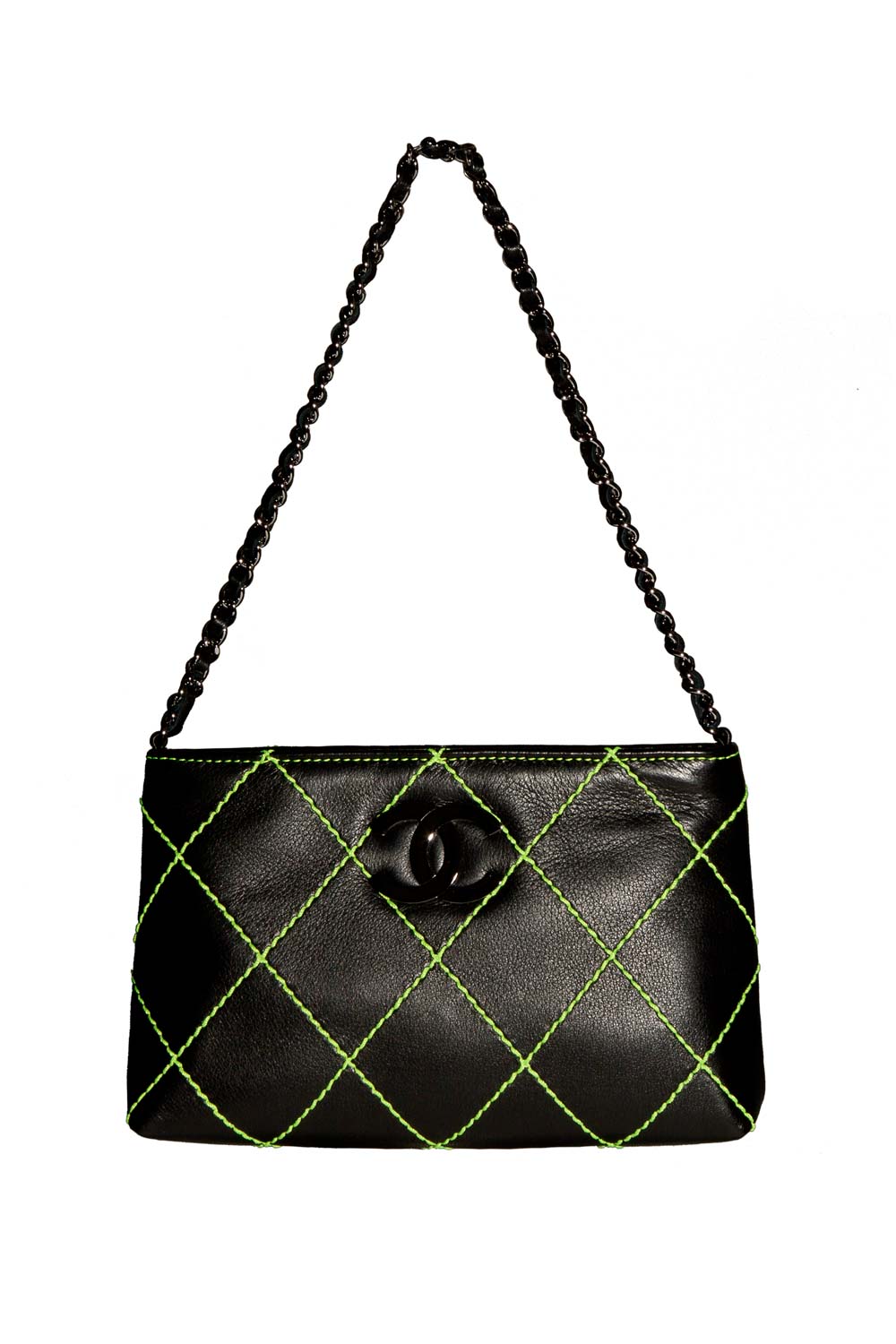 SMALL BLACK LAMBSKIN BAG WITH SILVER “CC” LOGO & SHORT INTERLACED CHAIN