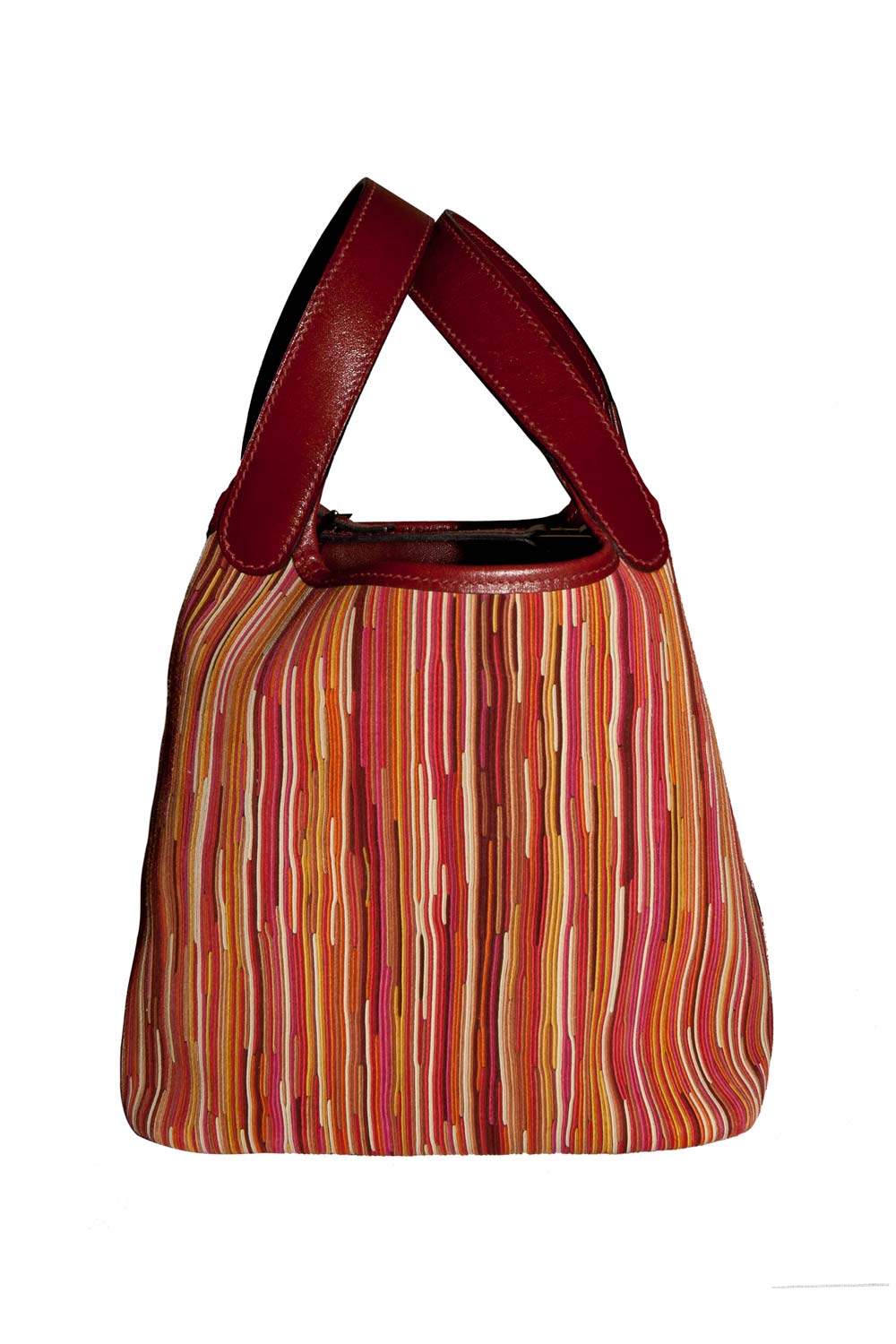 SMALL RED STRIPED SUEDE BAG WITH RED BOX LEATHER STRAPS & SILVER PALLADIUM HARDWARE